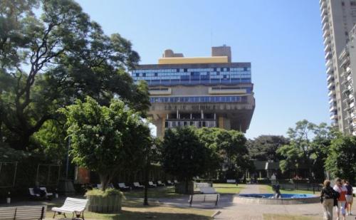 A otras 2 cuadras, se encuentra la Biblioteca Nacional con una particular forma que llama la atención de los que la ven desde afuera. Diseñada con las estructuras de hormigón armado a la vista y sin pintar.