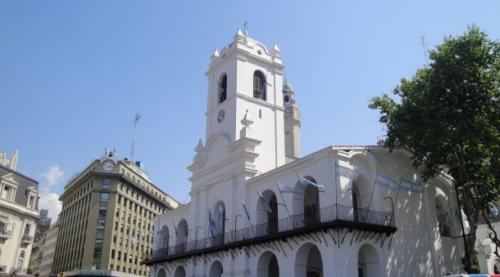 A su izquierda, sobre la calle Bolívar aún permanece parte del edificio original del Cabildo. El edificio actual fue proyectado a principios del siglo XVIII por el arquitecto jesuita Andrea Bianchi como sede del cabildo, de funciones administrativas, legislativas, judiciales, de policía y de milicia. Sus miembros eran elegidos anualmente en una votación entre los vecinos; se reunían en cabildos cerrados, y cuando los asuntos importantes lo requerían, en cabildos abiertos. A través de los años sufrió varias modificaciones hasta que fue reconstruido en 1940 por Mario Buschiazzo.