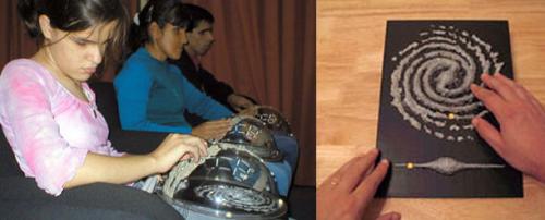 (*) Esfuerzos para la integración de no videntes se han realizado, aunque parcialmente, en algunos planetarios de Estados Unidos (donde se están realizando publicaciones con imágenes astronómicas, especialmente impresas para que puedan ser apreciadas por ciegos) y en la Cite des Sciences (París), donde los no videntes pueden adquirir un libro con dibujos astronómicos en relieve.