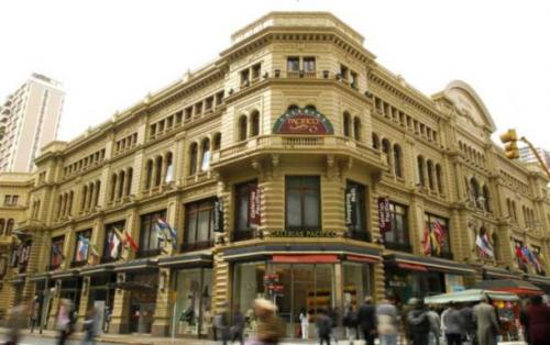 El edificio se hizo para alojar las tiendas Au Bon Marché Argentina, pero por problemas económicos, éstas nunca llegaron a inaugurarse y se instalaron en cambio varios comercios más pequeños.