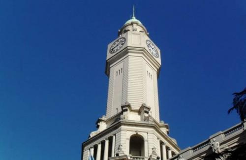 El 18 de Noviembre de 1926 es colocada la piedra fundamental por el entonces Presidente de la República, Dr. Marcelo T. de Alvear; sin embargo, la finalización de la obra demandará cerca de cinco años. El edificio se emplaza entre las calles Hipólito Yrigoyen, Diagonal Julio A. Roca y Perú. La vista conforma un triángulo de grandes dimensiones cuya compacta volumetría exterior se ajusta a los límites del terreno y solo se distingue del resto de tejido urbano por la torre del reloj.